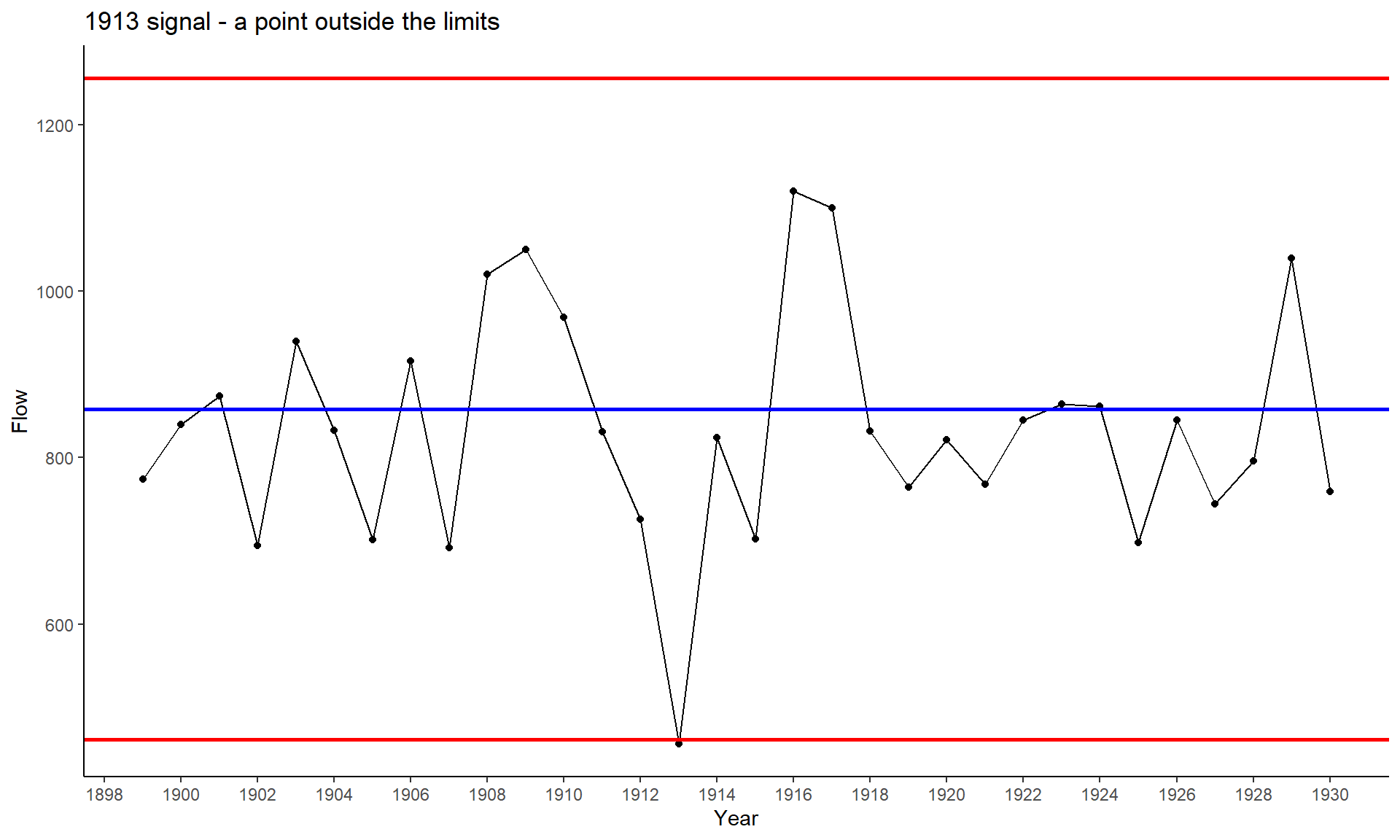 labs(title = "1913 signal - a point outside the limits")